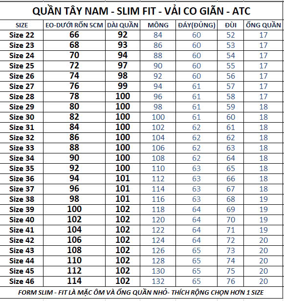 QUẦN TÂY NAM VẢI KAKI THUN ATC- có Vòng Eo từ 66cm_114cm
